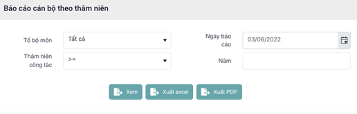 - Bước 3: Chọn Tổ bộ môn, Ngày báo cáp, Thâm niên công tác, Năm