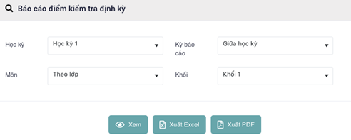 - Bước 3: Chọn Học kỳ, Kỳ báo cáo, Môn và Khối >> Nhấn xem