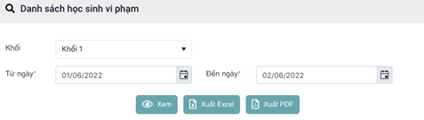 - Bước 2: Chọn Danh sách học sinh vi phạm