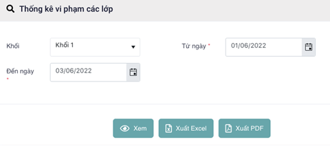 - Bước 2: Chọn Thống kê vi phạm các lớp