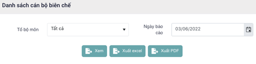 - Bước 3: Chọn Tổ bộ môn và Ngày báo cáo >> Nhấn Xem