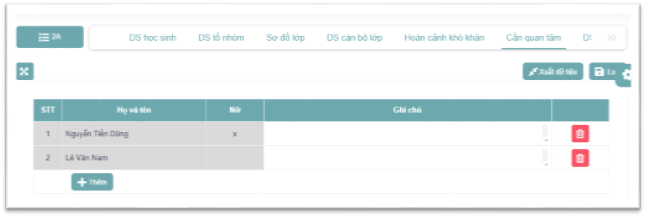 - Bước 5: Ấn nút Lưu để thực hiện lưu danh sách học sinh cần quan tâm