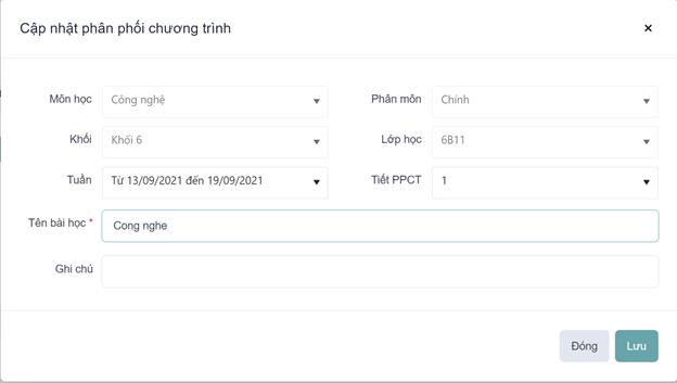 Bước 3: Hiển thị ra màn hình cập nhập phân phối chương trình