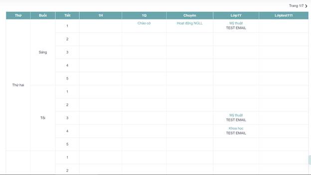 - Bước 2 : NSD thực hiện cập nhập thời khóa biểu tại bảng thời khóa biểu