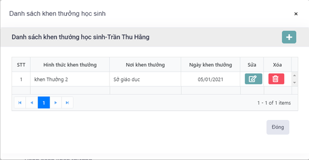 - Bước 3: Click vào tên học sinh ở lưới danh sách học sinh Khen thưởng • Hiển thị Pop up ‘Danh sách khen thưởng học sinh’.