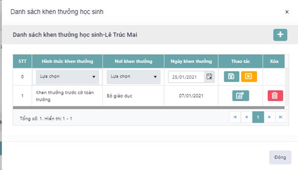 - Bước 4: Tiến hành cập nhật danh sách khen thưởng cho học sinh (Thêm mới, sửa, xóa hình thức khen thưởng)
