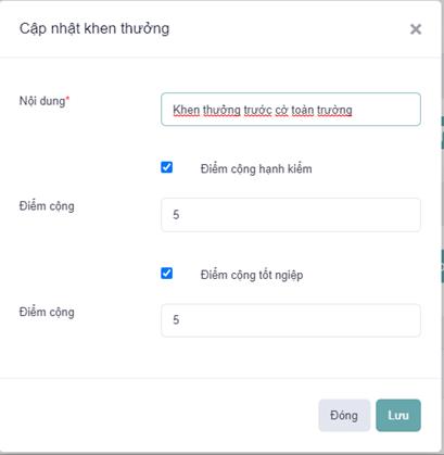 - Bước 3: Hiển thị ra Popup Cập nhật Khen thưởng
