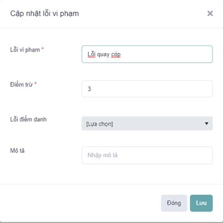 - Bước 3: Hiển thị ra popup Cập nhật lỗi vi phạm: