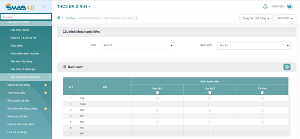 - Đăng nhập >> Chọn menu “Hệ thống” >> Chọn menu “Cấu hình hệ thống” >> Chọn menu “Cấu hình khoá hạnh kiểm” => Hệ thống hiển thị màn hình “Cấu hình khoá hạnh kiểm”