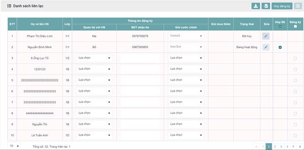 Bước 2: Thực hiện tìm kiếm thông tin cần đăng ký tại phân vùng tìm kiếm danh sách liên lạc
