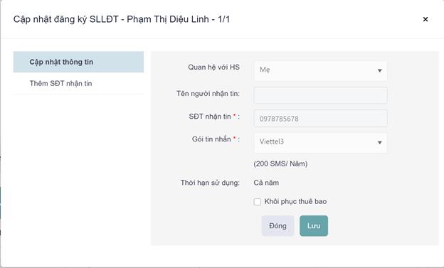 Bước 5: NSD thực hiện chỉnh sửa – cập nhập tại màn hình Cập nhập đăng ký SLLĐT