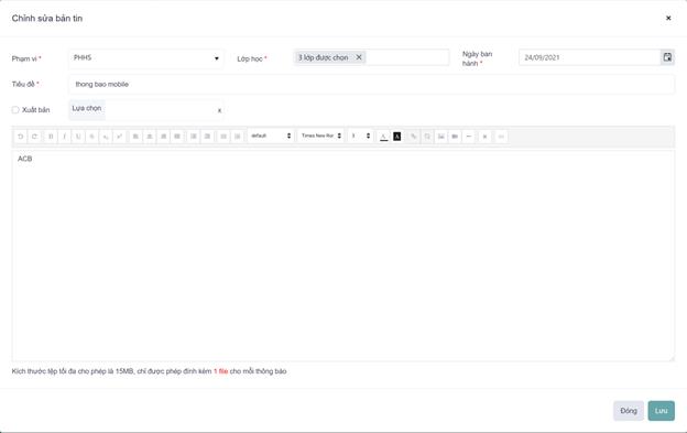 Bước 3: NSD thực hiện chỉnh sửa bản tin tại màn hình chỉnh sửa