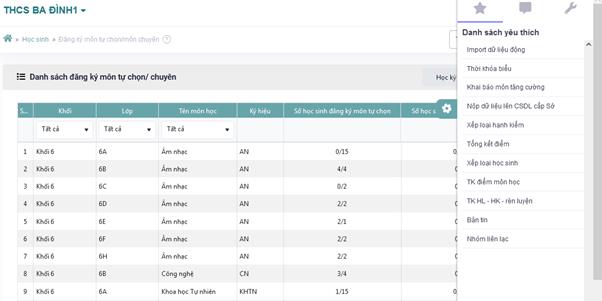 - Bước 1: Đăng nhập >> Vào menu “Học sinh” >> Chọn “Đăng ký môn tự chọn/ môn chuyên (thêm môn chuyên)