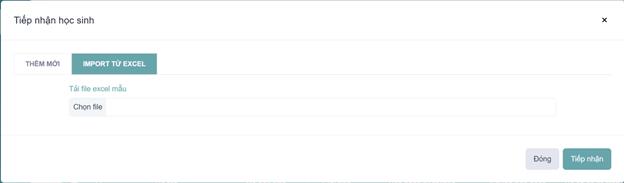 Bước 3 : Hiển thị màn hình “Tiếp nhận học sinh”, chọn tab “Import từ Excel”