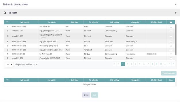 Hiển thị màn hình Thêm mới cán bộ vào nhóm