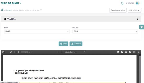 - Bước 2: Hiển thị màn hình ““Học sinh ở lại lớp”
