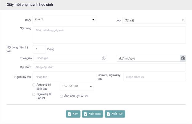 Bước 1: Đăng nhập >> Vào menu “Báo cáo” >> Chọn “Báo cáo hồ sơ học sinh” >>Chọn menu “Giấy mời PHHS”