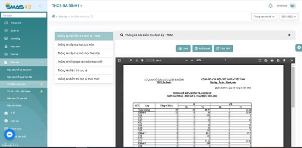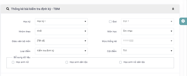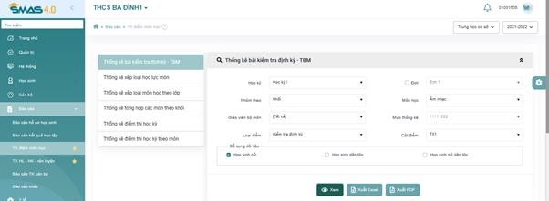 - Bước 4: Hiển thị thông tin “Thống kê bài kiểm tra định kỳ-TBM”:
