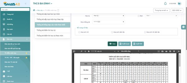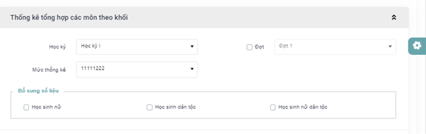 - Bước 4: Hiển thị thông tin “Thống kê tổng hợp các môn theo khối”