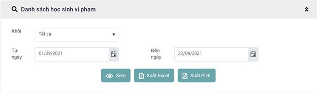 Bước 1: Đăng nhập >> Vào menu “Báo cáo” >> Chọn “Báo cáo hồ sơ học sinh” >>Chọn menu “ Danh sách học sinh vi phạm”