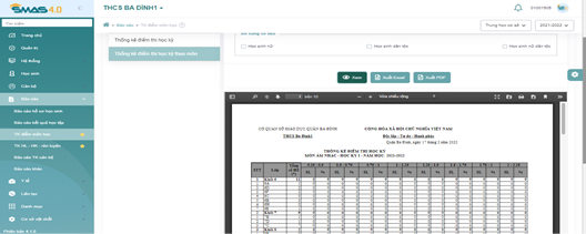 - Bước 4: Hiển thị thông tin “Thống kê điểm học kỳ theo môn”