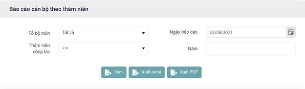 màn hình Xem thông tin Danh sách cán bộ theo thâm niên