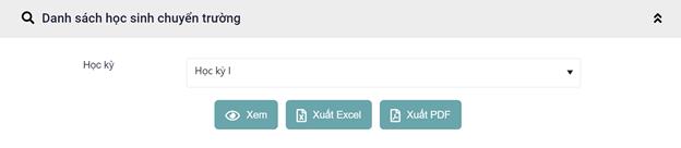 Bước 1: Đăng nhập >> Vào menu “Báo cáo” >> Chọn “Báo cáo hồ sơ học sinh” >>Chọn menu “ Danh sách học sinh chuyển trường”