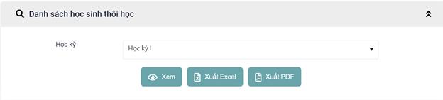Bước 1: Đăng nhập >> Vào menu “Báo cáo” >> Chọn “Báo cáo hồ sơ học sinh” >>Chọn menu “ Danh sách học sinh thôi học”