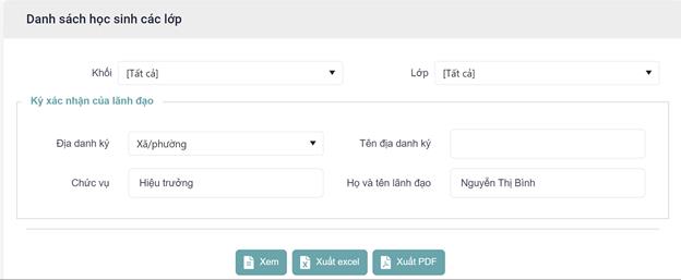 Bước 1: Đăng nhập >> Vào menu “Báo cáo” >> Chọn “Báo cáo hồ sơ học sinh” >>Chọn menu “ Danh sách học sinh các lớp”