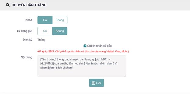 Bước 1 : Đăng nhập >> Vào menu “Liên lạc” >> Chọn “ Cấu hình” => Hiển thị màn hình “Bản tin” >> Chọn “ Chuyên cần tháng”