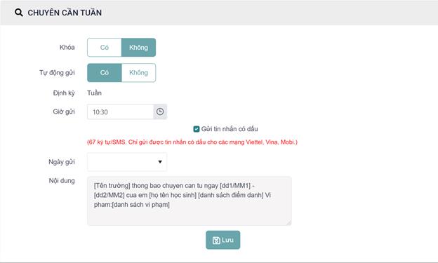 Bước 1 : Đăng nhập >> Vào menu “Liên lạc” >> Chọn “ Cấu hình” => Hiển thị màn hình “Bản tin” >> Chọn “ Chuyên cần tuần”
