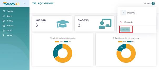 Để đăng xuất khỏi hệ thống, người dùng nhấn chuột vào hình đại diện, sau đó nhấn “Đăng Xuất” để thoát khỏi hệ thống.