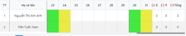 + Năm hiện tại : mặc định màn hình điểm danh tháng hiện tại