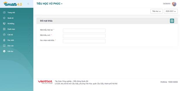 - Bước 2: Hiển thị màn hình thay đổi mật khẩu, nhập các thông tin