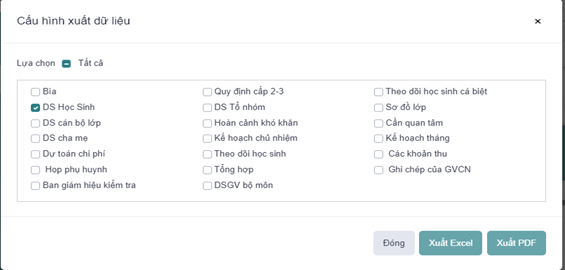 xuất Excel hoặc kích nút