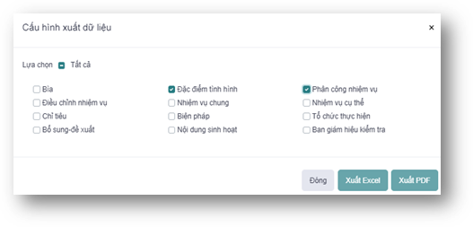 - Bước 4: Chọn dữ liệu các tab cần xuất file