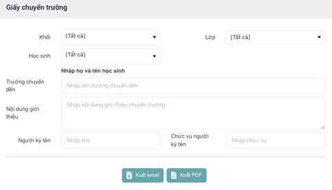 - Bước 3: Nhập các thông tin của học sinh chuyển trường