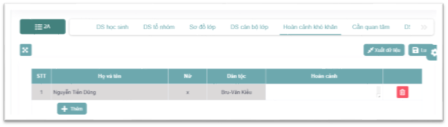 - Bước 5: Ấn nút Lưu để thực hiện lưu danh sách học sinh hoàn cảnh khó khăn