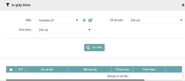 Bước 2: Hiển thị màn hình in giấy khen
