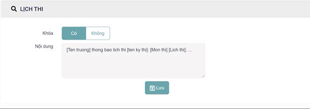 Bước 1 : Đăng nhập >> Vào menu “Liên lạc” >> Chọn “ Cấu hình” => Hiển thị màn hình “Bản tin” >> Chọn “ Lịch thi”
