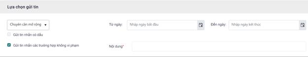 Bước 3: Chọn các thông tin để gửi tùy theo mục được lựa chọn