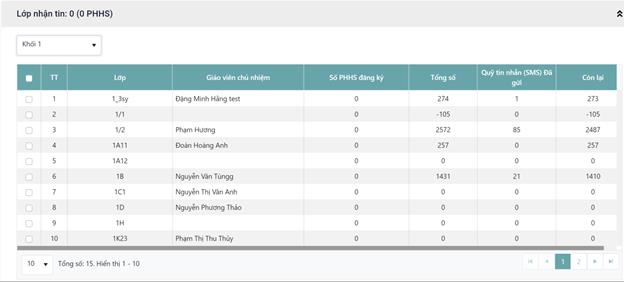 Bước 4: Chọn lớp nhận tin tại bảng “ Lớp nhận tin”
