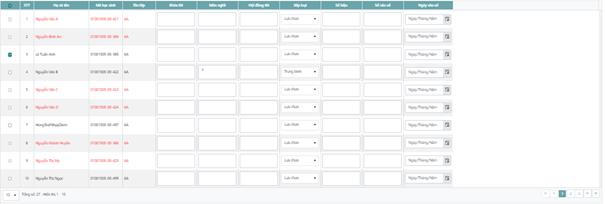 Bước 2: Chọn học sinh muốn lưu và điền đầy đủ thông tin có trong bảng