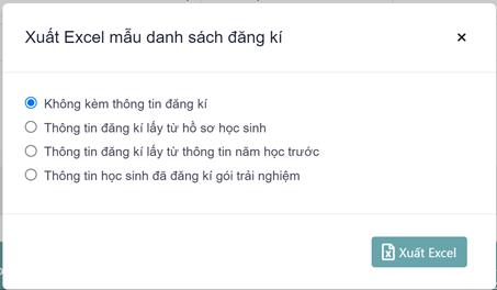 Bước 4: Hiển thị màn hình “ Xuất Excel mẫu danh sách đăng ký”