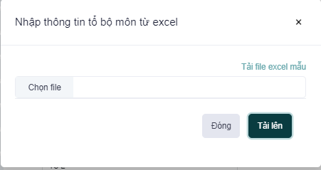thị màn hình Nhập thông tin tổ bộ môn từ excel
