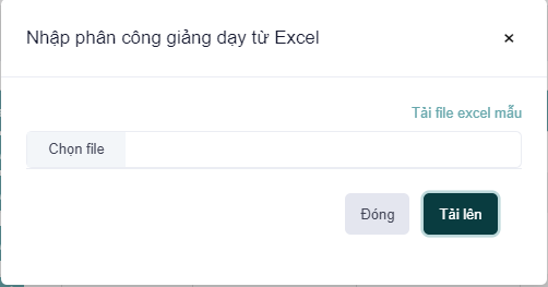 thị màn hình Nhập thông tin giảng dạy từ excel