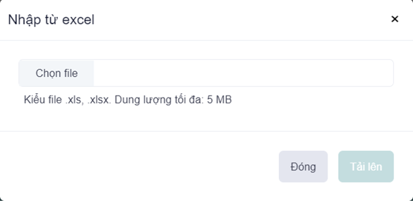 - Bước 3: NSD chọn file excel cần tải dữ liệu lên từ nơi lưu trữ
