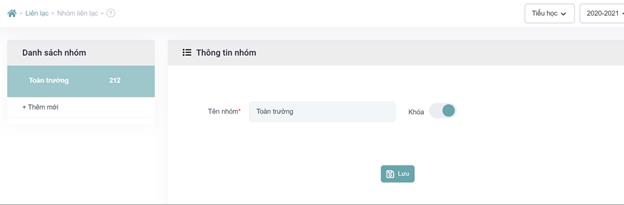 Bước 1 : Đăng nhập >> Vào menu “Liên lạc” >> Chọn “ Nhóm liên lạc” => Hiển thị màn hình “ Nhóm liên lạc”