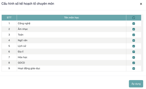 - Bước 5: Tích chọn môn học >> Áp dụng