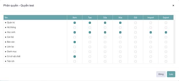 Bước 3 : Tích hoặc bỏ chọn các vai trò tại màn hình phân quyền nhóm người dùng